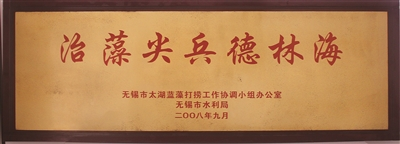 在經(jīng)過一段時間的“急診”治療之后,無錫藍(lán)藻危機(jī)暫時解除,無錫市政府專門送了一塊牌匾:“治藻尖兵”,這被胡明明視若珍寶,掛在辦公室最顯眼的位置。