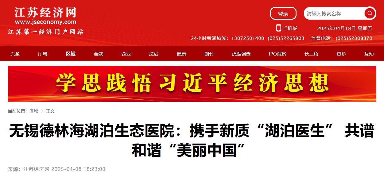 江蘇經(jīng)濟(jì)網(wǎng):無錫德林海湖泊生態(tài)醫(yī)院:攜手新質(zhì)“湖泊醫(yī)生” 共譜和諧“美麗中國(guó)”