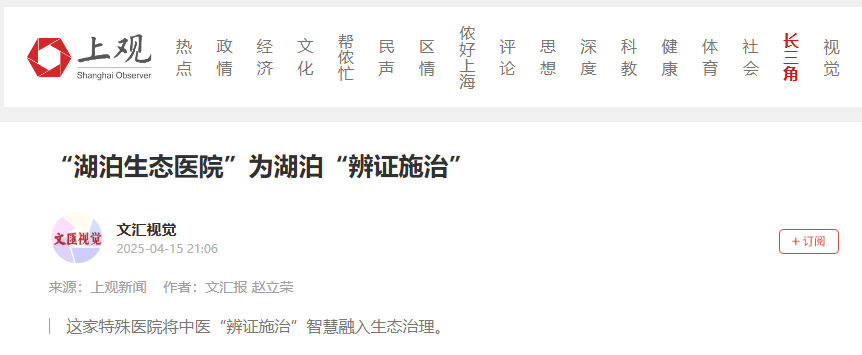 《文匯報(bào)》:“湖泊生態(tài)醫(yī)院”為湖泊“辨證施治”