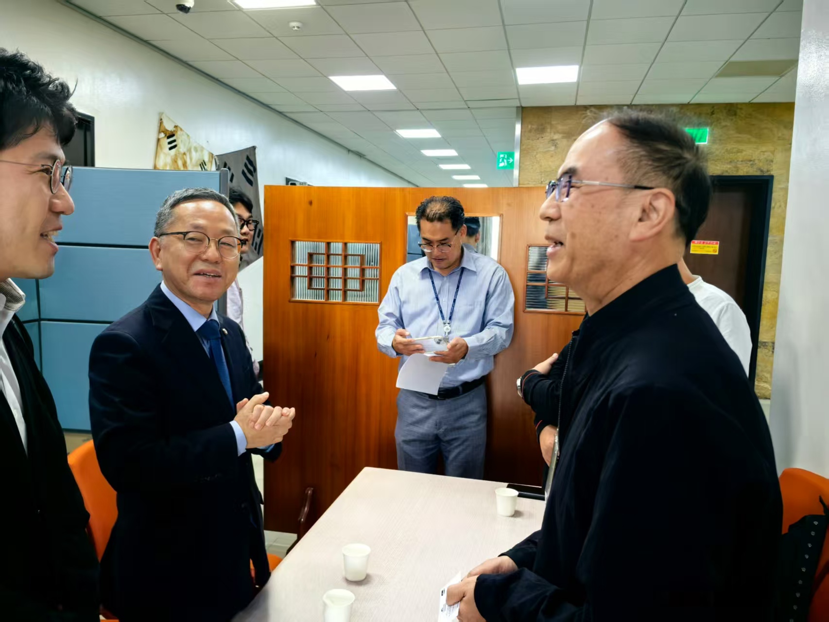 在韓期間,德林海湖泊生態(tài)醫(yī)院團(tuán)隊前往國會議事堂拜訪韓國現(xiàn)任國會議員金文洙。院長孫陽向金議員介紹了德林海在中國湖庫藍(lán)藻治理方面的豐富經(jīng)驗(yàn),特別是“太湖經(jīng)驗(yàn)”和湖泊生態(tài)醫(yī)院模式,強(qiáng)調(diào)藍(lán)藻水華治理需從生態(tài)系統(tǒng)的整體性出發(fā),構(gòu)建常態(tài)化監(jiān)測防控與應(yīng)急治理相結(jié)合的工作機(jī)制。金議員表示期待德林海湖泊生態(tài)醫(yī)院能在“太湖經(jīng)驗(yàn)”的基礎(chǔ)上,結(jié)合韓國水環(huán)境現(xiàn)狀與H2O公司、Kwater公司開展治理合作。